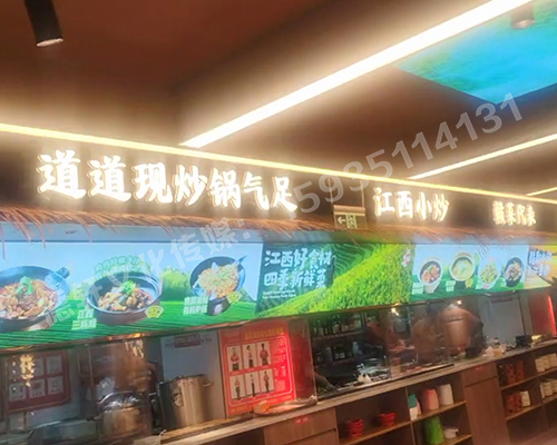 江西小炒太原親賢街店門頭+店內(nèi)燈箱+發(fā)光字+軟裝              江西小炒太原親賢街店門頭+店內(nèi)燈箱+發(fā)光字+軟裝